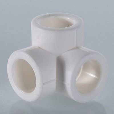 Полипропиленовый фитинг – тройник для разветвления полипропиленового трубопровода в двух плоскостях (тройник двухплоскостной). Монтаж производится методом раструбной сварки. Свариваемые поверхности – внутренние. Серия включает в себя фитинги с условным диаметром 20, 25 и 32 мм.