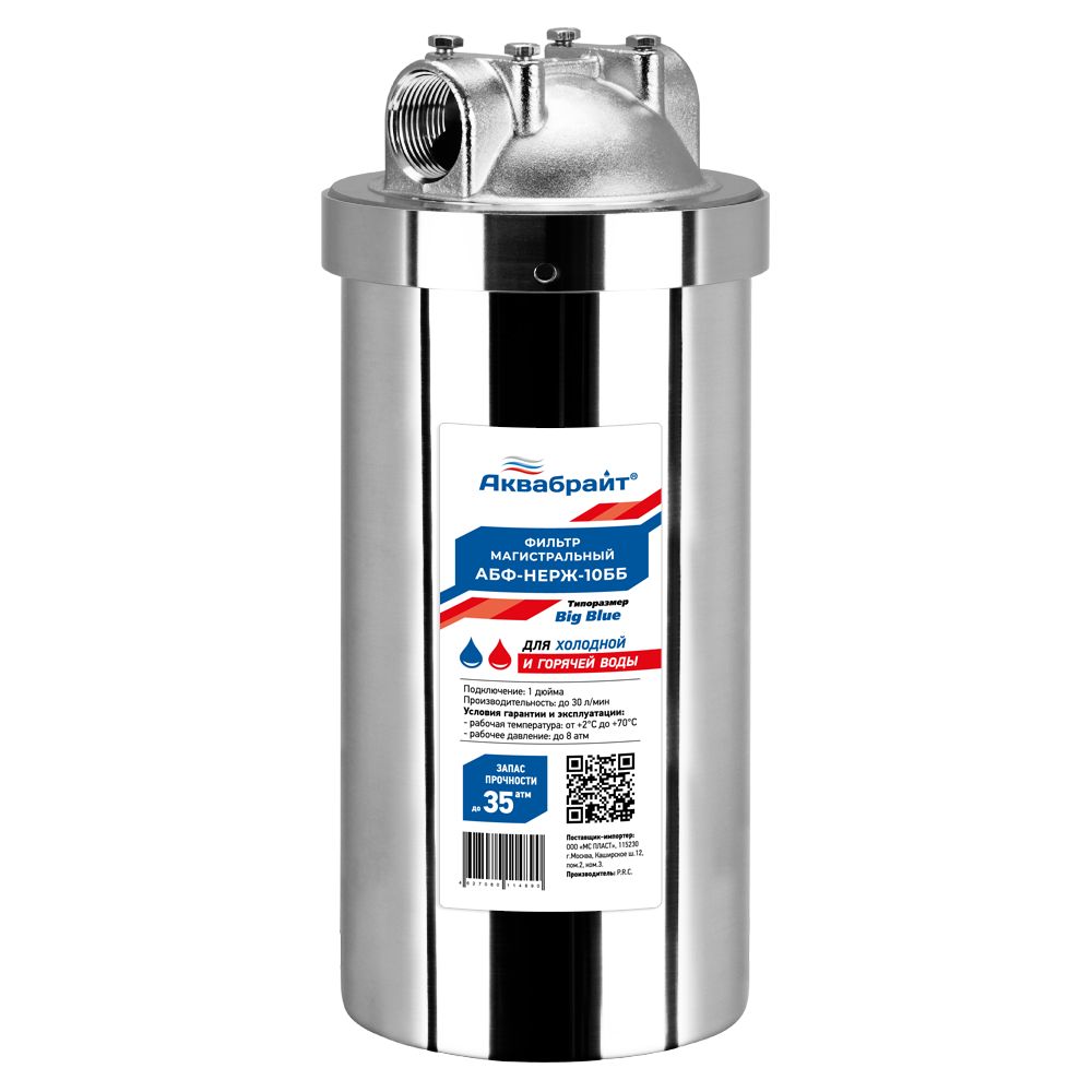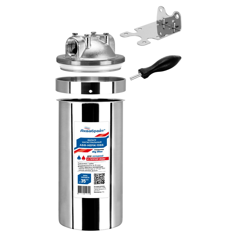 Главная > Каталог > ФИЛЬТРЫ > Корпус-фильтры для механической очистки воды > Магистральный фильтр АКВАБРАЙТ АБФ-НЕРЖ-10ББ