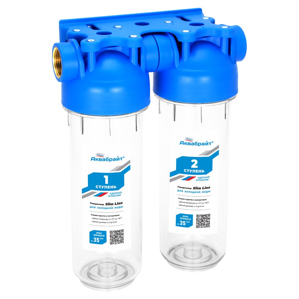 Двухступенчатый магистральный фильтр 10" # 1/2" (прозрачный, кронш., ключ) АКВАБРАЙТ
