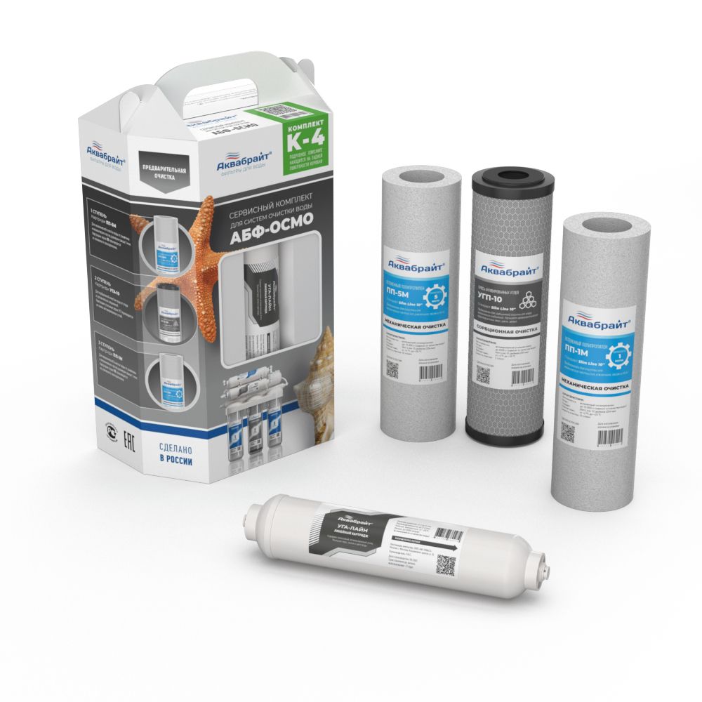 Главная > Каталог > ФИЛЬТРЫ > Система обратного осмоса > Комплект картриджей К-4 для ОСМО-5 АКВАБРАЙТ