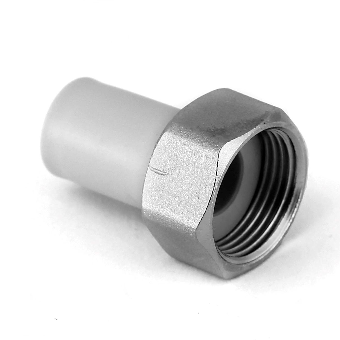 Переходник комбинированный с накидной гайкой HEISSKRAFT предназначен для соединения полипропиленового трубопровода с элементом системы с резьбовым соединением