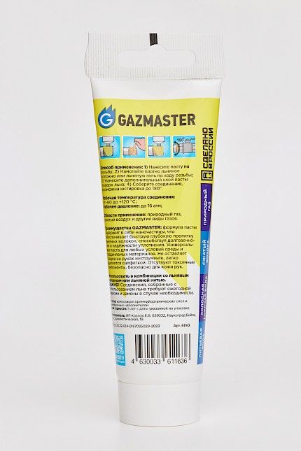 Паста для льна GAZMASTER – это новая формула пасты, специально разработанная для работ в системах газоснабжения и газопотребления. Ее состав в комбинации со льном позволяет надежно герметизировать трубопроводы, которые транспортируют природный и сжиженный газ, сжатый воздух и пр.