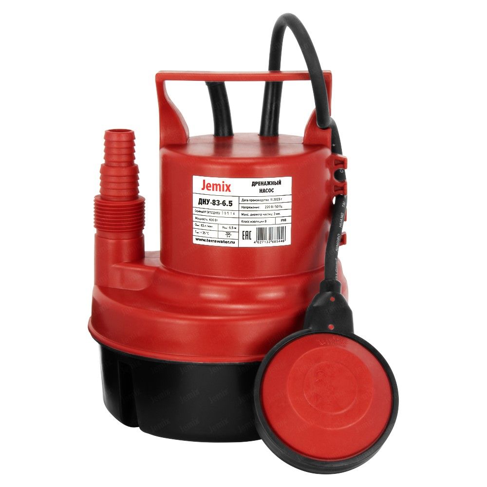 Насос погружной дренажный ДНУ-83-6,5 пластик. (400Вт., 3мм.) JEMIX КРАСНЫЙ