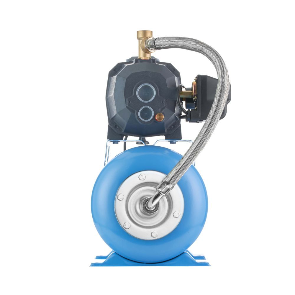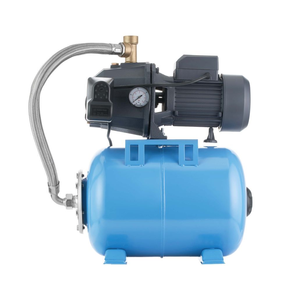 Насосная станция с гидроаккумулятором 24 литра представляет собой устройство на базе поверхностного центробежного насоса с внешним эжектором, оснащенное гидроаккумулятором из углеродистой стали, реле давления и манометром. Максимальная высота всасывания достигает 15 метров.