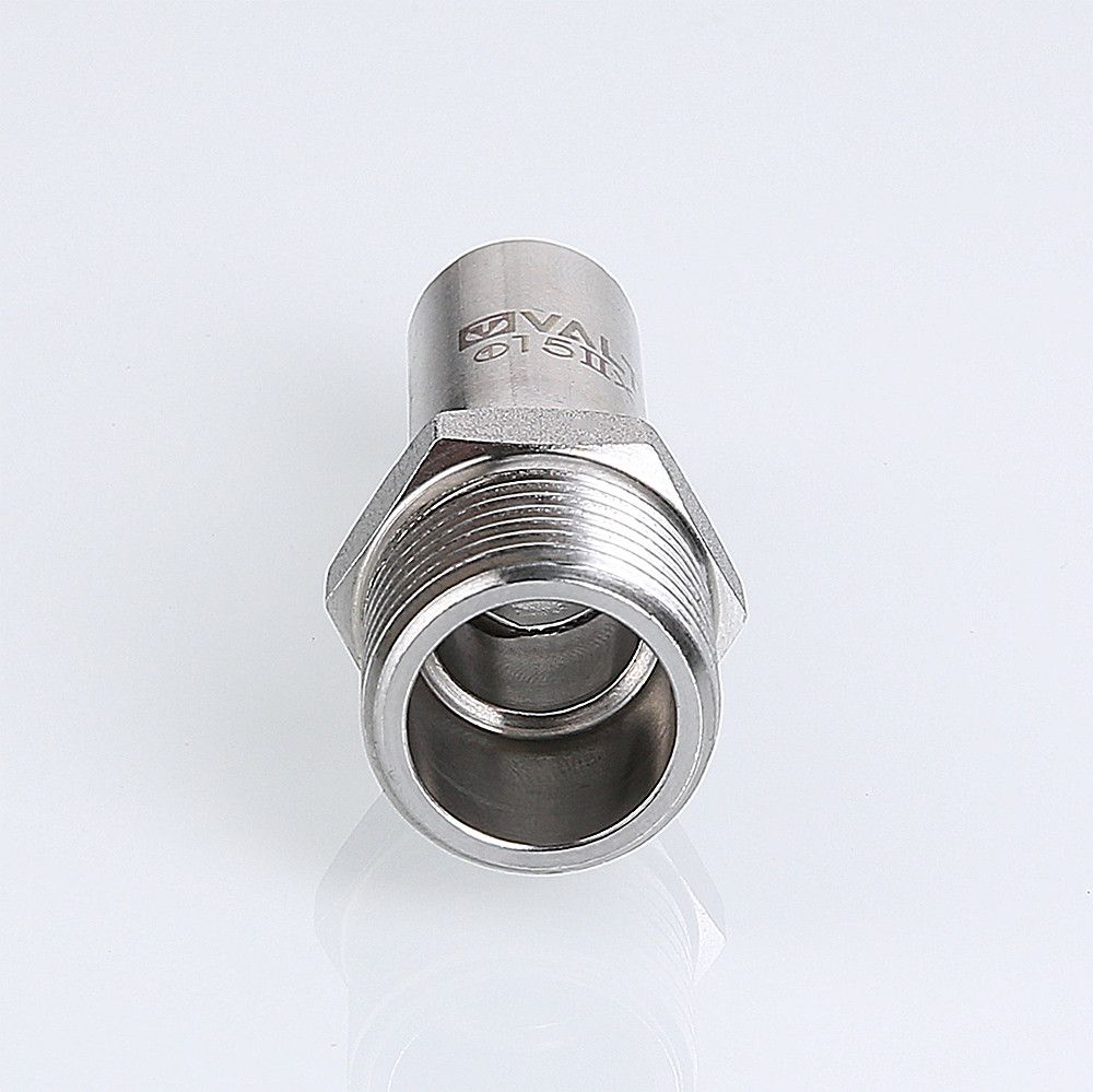 предназначена для использования совместно с пресс-фитингом системы VALTEC INOX-PRESS при монтаже трубопровода из нержавеющей стали – для перехода с пресс-соединения на резьбовое. Изделие изготовлено из стали AISI 304.