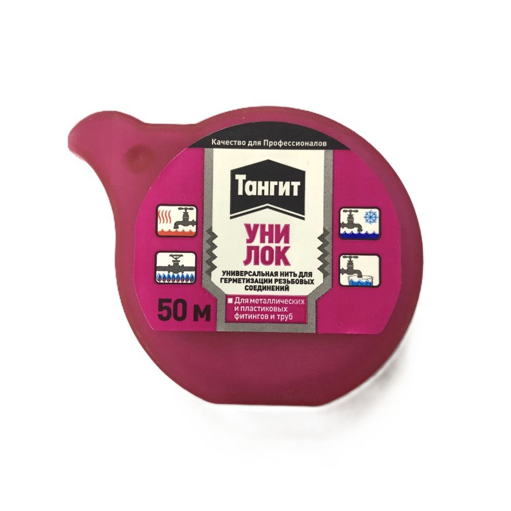 Нить Тангит Унилок является универсальным материалом для герметизации труб, имеющих резьбу. Она позволяет герметизировать снабженные резьбой узлы (ISO 7-1), например муфты и фитинги труб как с цилиндрической, так и конической резьбой.