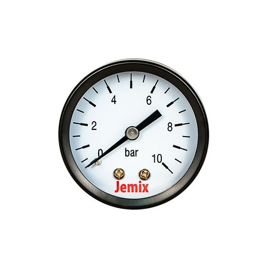 Главная > Каталог > ЗАПОРНО-РЕГУЛИРУЮЩАЯ АРМАТУРА > Манометры, термометры аксиальные > Манометр аксиальный JEMIX 1/4" 10 бар 50 мм