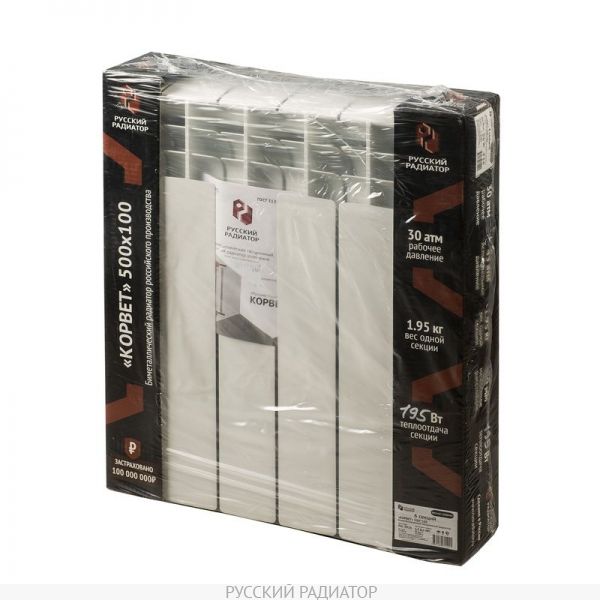 Биметаллический радиатор РУССКИЙ РАДИАТОР КОРВЕТ 500/100