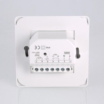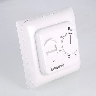 (VT.AC602.0) Настенный комнатный термостат с выносным и встроенным датчиками температуры. Обеспечивает поддержание температуры воздуха помещения или нагреваемой поверхности посредством двухпозиционного управления оборудованием климатических систем (прежде всего – теплого пола). При одновременном задействовании датчиков внешний является ограничительным. Пользователь задает значение регулируемого параметра настроечным колесиком. Термостат оснащен клавишей включения/выключения; состояние прибора отображается светодиодным индикатором. Монтаж термостата производится в стандартную коробку скрытой проводки.
