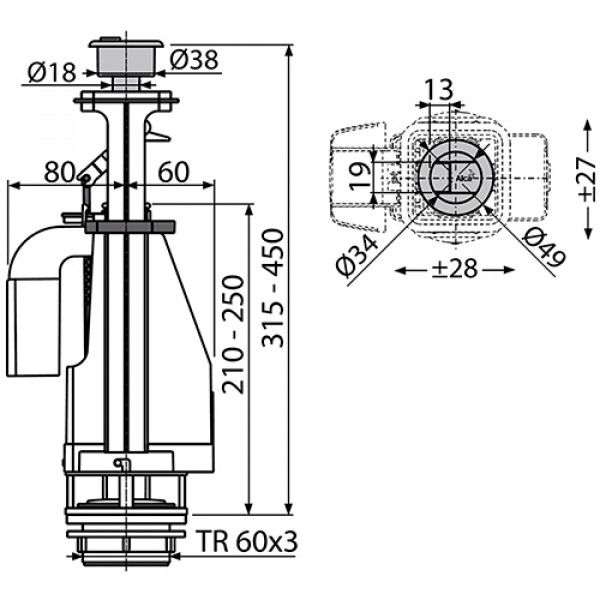 Главная > Каталог > КАНАЛИЗАЦИЯ > Арматура для унитазов > Сливной механизм с двойной кнопкой ALCAPLAST