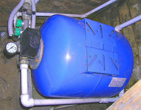 Давление в городском водопроводе обеспечивают мощные сетевые насосы. Для частного дома, который снабжается водой от собственной скважины, недостаточно установки только насоса. Конечно, можно включать его напрямую, закачивая воду в ёмкость, но для организации водоразбора через краны нужно автоматизировать подачу воды, одновременно обеспечив нужный напор. Для этой цели служит вакуумный бак­-аккумулятор, где давление поддерживается на нужном уровне. Реле давления срабатывает по нижнему и верхнему пределу, установленному для бак-а­аккумулятора при настройке.